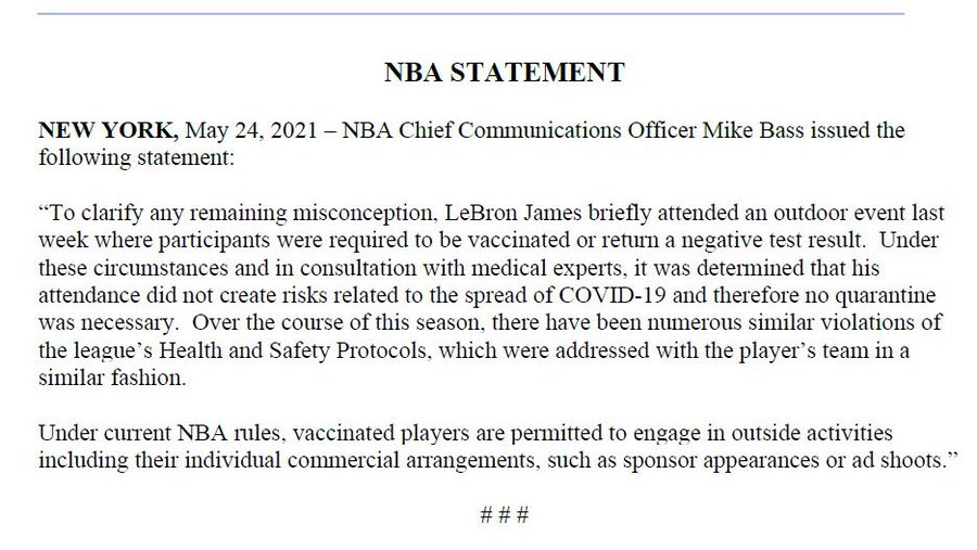 Nba Statement Strongly Implies Lebron James Has Taken Covid 19 Vaccine Silver Screen And Roll
